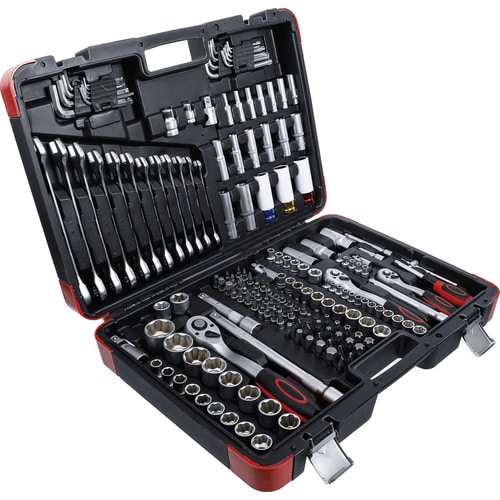 | Besonderheiten | Feinverzahnte Umschaltknarren, umfangreiches Bit-Sortiment, Zündkerzen-Einsätze |