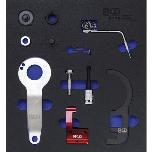 Die BGS Technic Werkstattwagen-Einlage ist sorgfältig zusammengestellt, um Ihnen alle notwendigen Werkzeuge für die präzise Einstellung der Steuerzeiten an BMW und MINI Motoren zur Verfügung zu stellen. Jedes Werkzeug ist aus hochwertigen Materialien gefertigt und präzise verarbeitet, um eine lange Lebensdauer und zuverlässige Leistung zu gewährleisten.