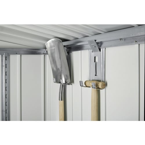 Die Gerätehalter haben eine edle silberfarbene Optik, die sich harmonisch in das Gesamtbild Ihres Gerätehauses einfügt.