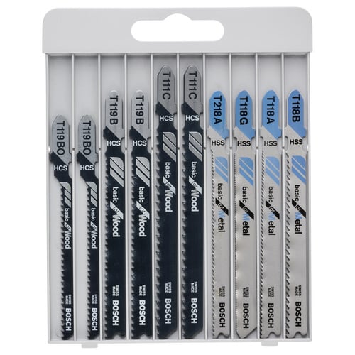 Die Sägeblätter im BOSCH Stichsägeblatt-Set Basic for Metal and Wood sind mit einer T-Schaftaufnahme ausgestattet. Diese Aufnahme ist der gängige Standard für Stichsägen. Bitte überprüfen Sie vor dem Kauf, ob Ihre Stichsäge eine T-Schaftaufnahme besitzt.