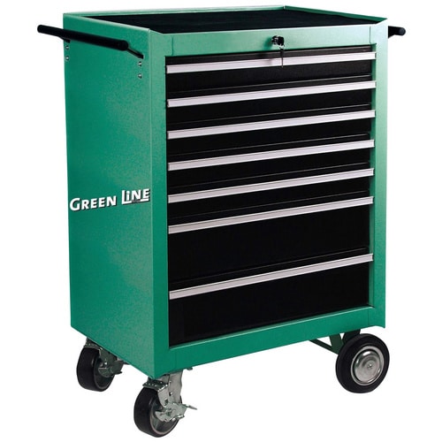 - Ansprechendes Design: Die grüne Lackierung verleiht dem Werkstattwagen eine moderne Optik.