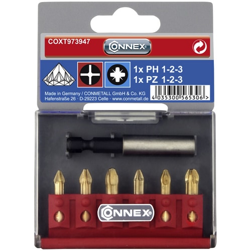 Der CONNEX Bitsatz überzeugt nicht nur durch seine Vielseitigkeit, sondern auch durch seine erstklassige Qualität. Die Bits sind aus hochwertigem Werkzeugstahl gefertigt und speziell gehärtet, um eine hohe Verschleißfestigkeit und eine lange Lebensdauer zu gewährleisten. Auch bei intensivem Gebrauch behalten die Bits ihre Form und Präzision und liefern stets optimale Ergebnisse.