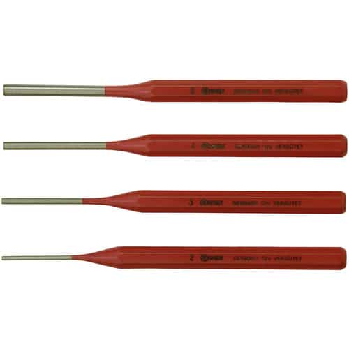 Der CONNEX Splintentreibersatz wurde mit Blick auf die Bedürfnisse anspruchsvoller Anwender entwickelt. Jedes Detail wurde sorgfältig durchdacht, um Ihnen ein Werkzeug zu bieten, das nicht nur funktional, sondern auch komfortabel in der Handhabung ist. Der Chrom-Vanadium-Stahl sorgt für eine hohe Härte und Widerstandsfähigkeit, während die präzise gefertigten Spitzen ein exaktes und beschädigungsfreies Arbeiten ermöglichen. Die Länge von 15 cm bietet Ihnen die nötige Reichweite, um auch schwer zugängliche Stellen problemlos zu erreichen. Die rote Farbgebung ist nicht nur ein optisches Highlight, sondern dient auch der besseren Erkennbarkeit in Ihrer Werkzeugkiste.