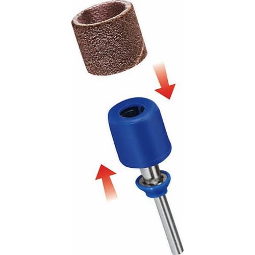 - Schleifband aufsetzen: Drücke das gewünschte Schleifband auf den Schleifdorn, bis es einrastet. Achte darauf, dass das Schleifband richtig sitzt und keine Falten wirft.
