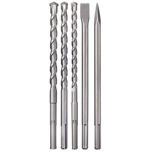 Das 5-teilige Set enthält eine Auswahl der gängigsten Meißel und Bohrer, die Sie für eine Vielzahl von Anwendungen benötigen. Vom Spitzmeißel für präzise Abbrucharbeiten bis zum Flachmeißel für das Entfernen von Fliesen und Putz – dieses Set bietet Ihnen die Flexibilität, die Sie für Ihre Projekte benötigen.