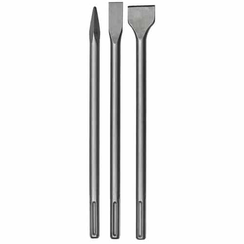 - Vielseitigkeit: Enthält drei verschiedene Meißeltypen für diverse Anwendungen.
