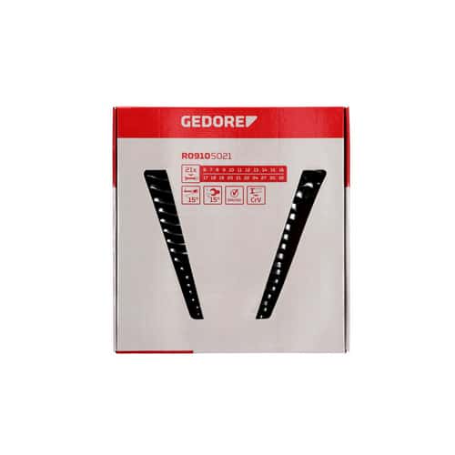 Der GEDORE red Ringmaulschlüssel-Satz enthält 21 Ringmaulschlüssel in den Größen 6, 7, 8, 9, 10, 11, 12, 13, 14, 15, 16, 17, 18, 19, 20, 21, 22, 24, 27, 30 und 32 mm.