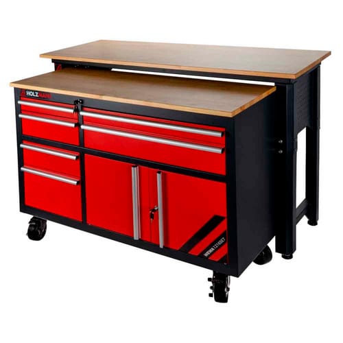 Träumen Sie von einer Werkstatt, in der Ordnung herrscht und jedes Werkzeug seinen Platz hat? Die HOLZMANN-MASCHINEN Werkbank »WEWA1216SET« macht diesen Traum wahr. Mit ihrer stabilen Konstruktion, der großzügigen Arbeitsfläche und dem integrierten Werkstattwagen mit sechs Schubladen bietet sie Ihnen alles, was Sie für effizientes und erfolgreiches Arbeiten benötigen. Lassen Sie sich von der durchdachten Funktionalität und dem ansprechenden Design in den Farben Schwarz und Rot begeistern!