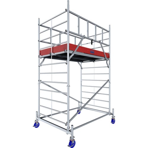 Das KRAUSE ProTec Fahrgerüst hat eine maximale Belastbarkeit von 200 kg/m². Dies bedeutet, dass Sie ausreichend Werkzeuge und Materialien mit auf das Gerüst nehmen können, ohne die Sicherheit zu gefährden.