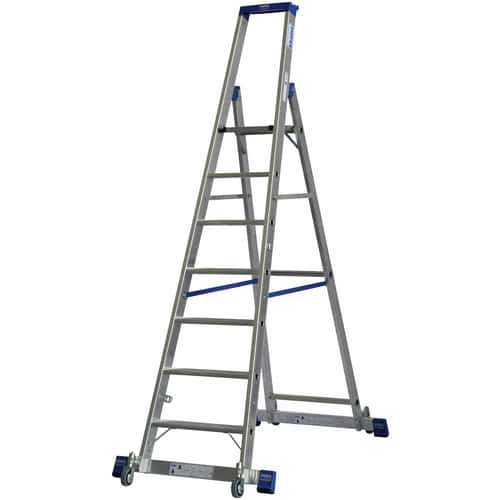 Die maximale Arbeitshöhe hängt von Ihrer Körpergröße ab. Im Allgemeinen können Sie mit der 7-Sprossen-Version eine Arbeitshöhe von ca. 3,50 m erreichen.