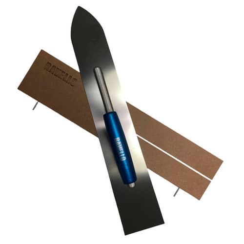 - Edelstahl-Glättkelle: Das Herzstück des Sets. Die Glättkelle ermöglicht ein ebenmäßiges Verteilen und Glätten des Steinteppichmaterials. Die flexible Klinge passt sich optimal an die Oberfläche an und sorgt für ein perfektes Finish.