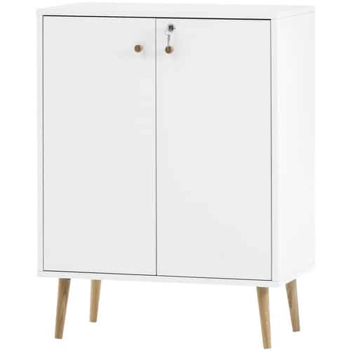 Der Korpus des SCHILDMEYER Aktenschranks besteht aus hochwertigem Holzwerkstoff, während die Griffknöpfe aus massiver Eiche gefertigt sind. Diese Kombination gewährleistet Stabilität, Langlebigkeit und eine ansprechende Optik.