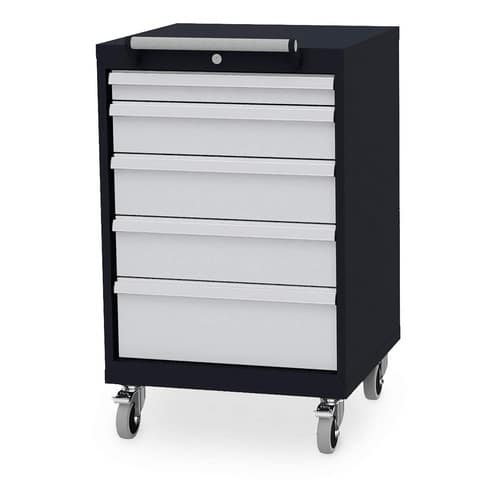 Der Simplaflex Schubladenschrank überzeugt nicht nur durch sein Design, sondern auch durch seine hochwertige Verarbeitung und langlebigen Materialien. Er ist darauf ausgelegt, den Anforderungen des täglichen Gebrauchs standzuhalten und Ihnen jahrelang treue Dienste zu leisten. Das robuste Stahlgehäuse sorgt für Stabilität und Belastbarkeit, während die leichtgängigen Schubladen ein komfortables Öffnen und Schließen ermöglichen.