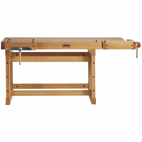 Die Hobelbank ist aus massiver Buche gefertigt, einem Holz, das für seine Härte, Festigkeit und Widerstandsfähigkeit bekannt ist.
