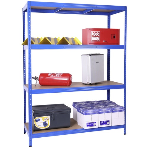 - Attraktives Design: Die blaue Pulverbeschichtung verleiht dem Regal eine moderne und ansprechende Optik.