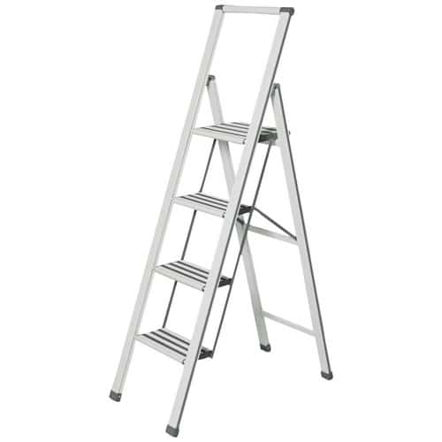 Der WENKO Klapptritt hat mit seinen 4 Stufen eine komfortable Aufstiegshöhe, die Ihnen hilft, auch höher gelegene Bereiche sicher zu erreichen. Die genaue Höhe des Klapptritts im aufgebauten Zustand entnehmen Sie bitte den technischen Daten.