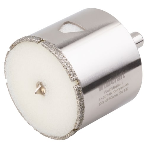 Die WOLFCRAFT Lochsäge (Ø 60 mm) verfügt in der Regel über einen Zentrierbohrer. Dieser Bohrer gibt die Richtung vor und muss nicht separat vorgebohrt werden.